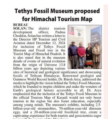 The TETHYS FOSSIL MSUEUM envisions the creation of Kasauli Geopark as a UNESCO Geoheritage site, integrating geology, history, archaeology, geography, culture, and more. This will boost tourism in the state of Himachal